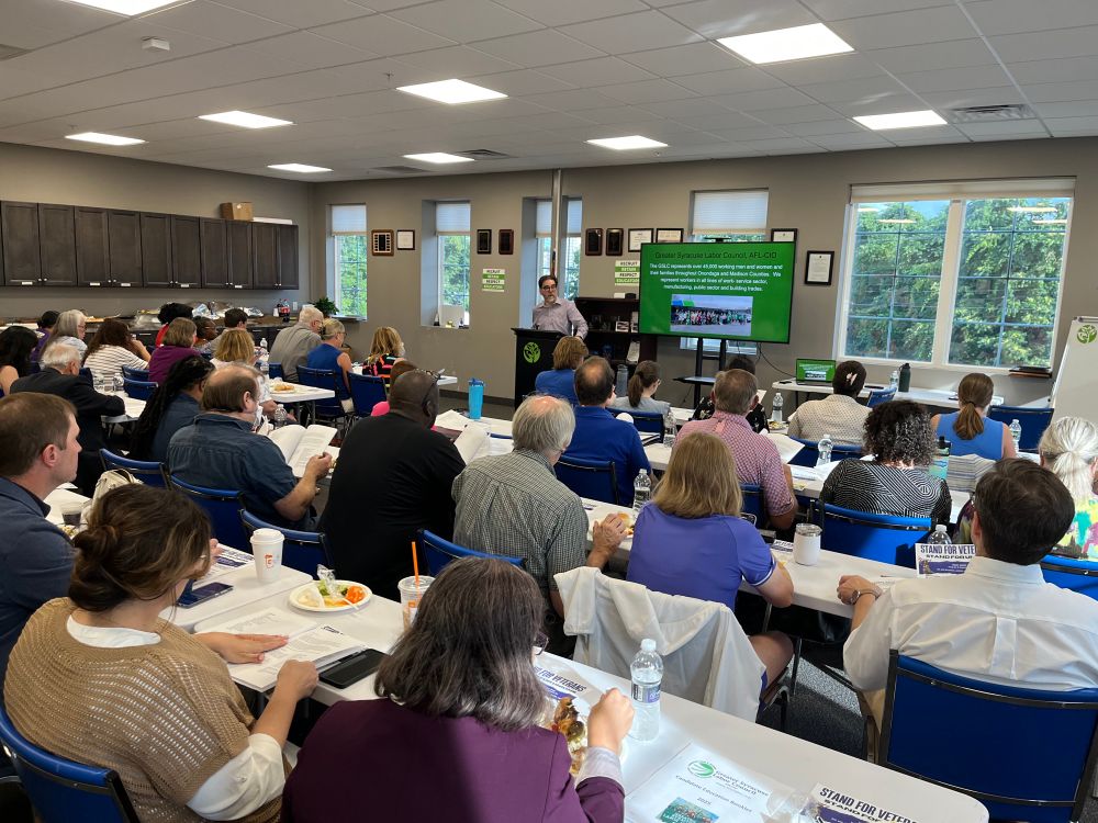 Standing room only for Greater Syracuse Labor Council Candidate Education Night - where office seekers learn what #UnionStrong really means! @nysaflcio.bsky.social @nysut.bsky.social @melindajperson.bsky.social @unionmark.bsky.social