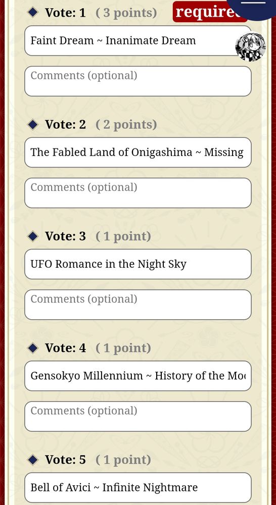 Touhou votes i will draw them later