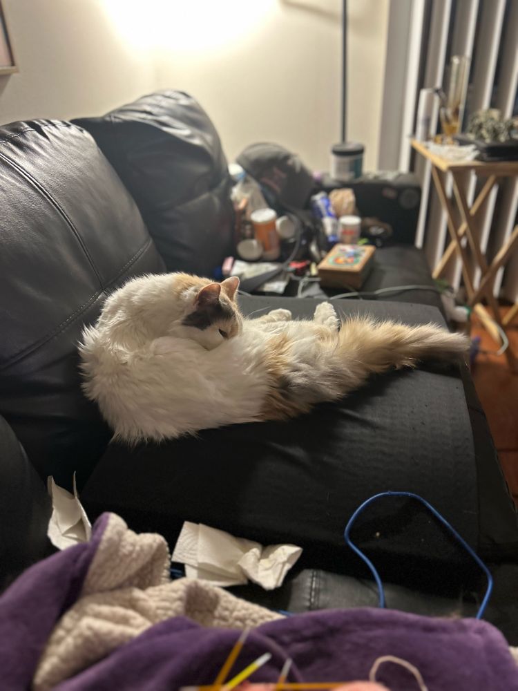 One time we had to put our fluffy girl into a harness (can’t remember why, probably scratching too much) and she just…