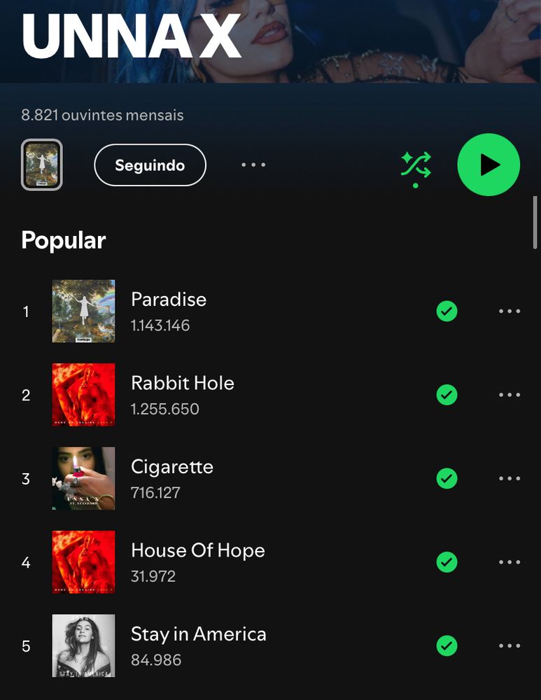 "paradise" acaba de atingir a marca de 1 milhão de streams
