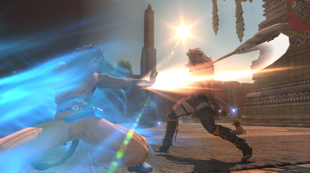 Caz training her protege Lamatyi. You'd think an axe would be more effective against bare hands, but Caz's paws are like steel! #hrothgal #ff14