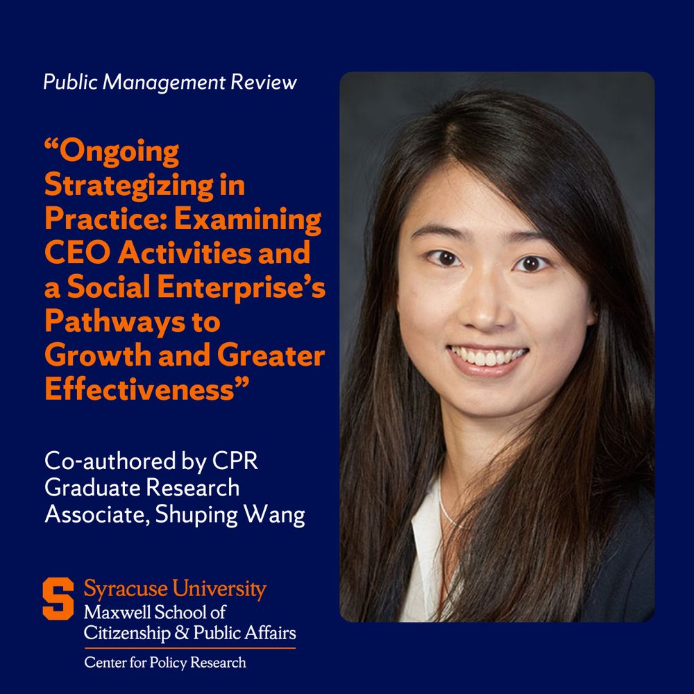 CPR Graduate Research Associate, Shuping Wang's co-authored paper, "Ongoing Strategizing in Practice: Examining CEO Activities and a Social Enterprise’s Pathways to Growth and Greater Effectiveness" was published in Public Management Review!
