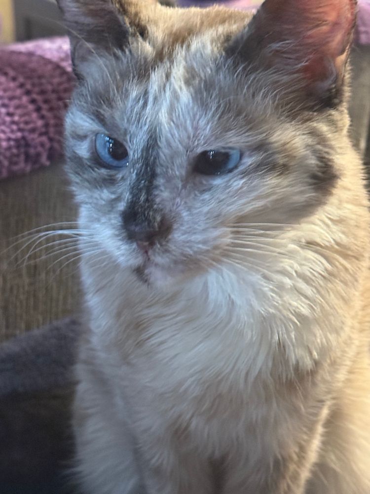 This is the look I get when I am taking too long to eat dinner and someone wants snuggle time.