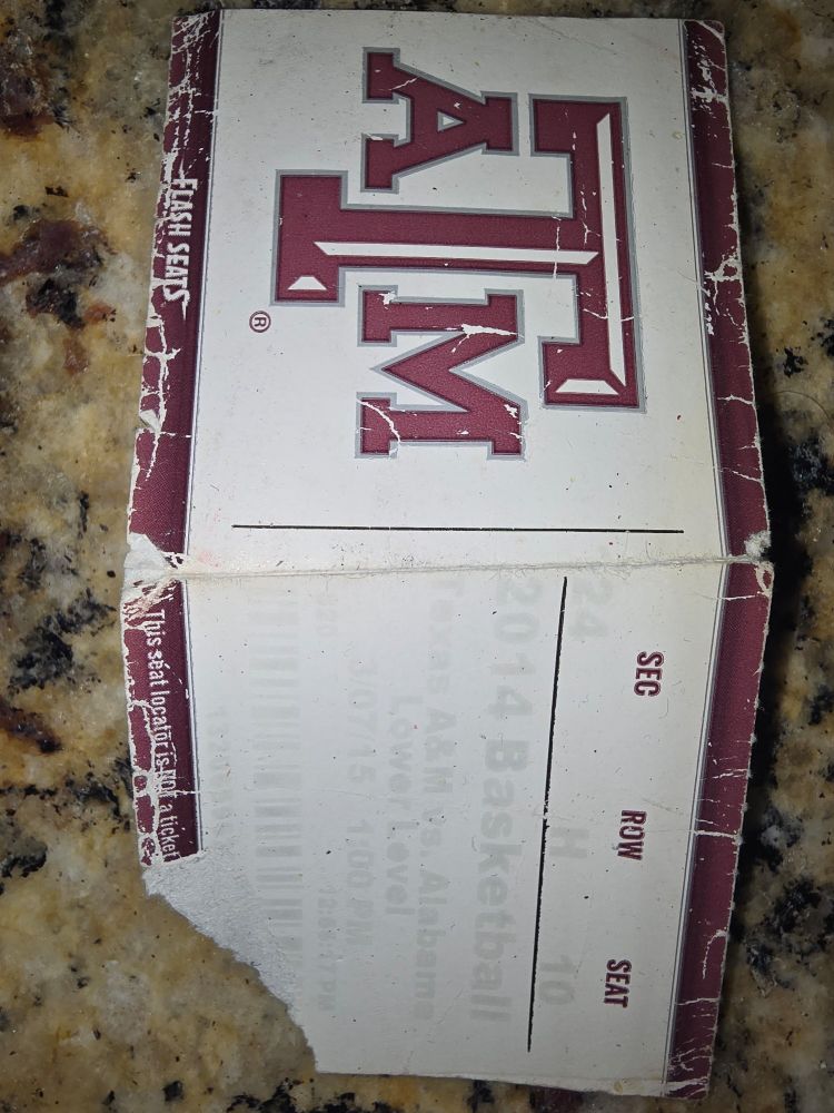 10 years ago, my wife and I went to an A&M v Bama basketball game for our first date. I still have the very faded ticket. Tonight, we're going to the A&M v Bama basketball game with our daughter to celebrate 10 years together. Pretty wild to see how different life is 10 years later.