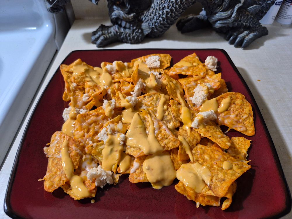 Like the epiphany I just had to add cut up rice crispies to my nachos no gibberish it's good😋