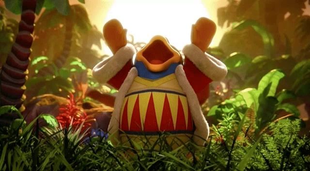 a cartoon character with a big mouth is standing in the grass