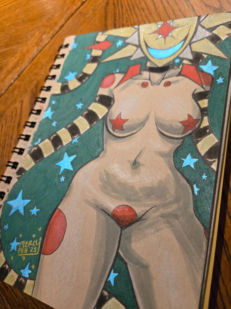 Ayo I've been doing some art recently ☺️ part of the ongoing series of "Striped Girls" I've been slowly adding to since high school. Biggest regret? The page ain't perforated 😭