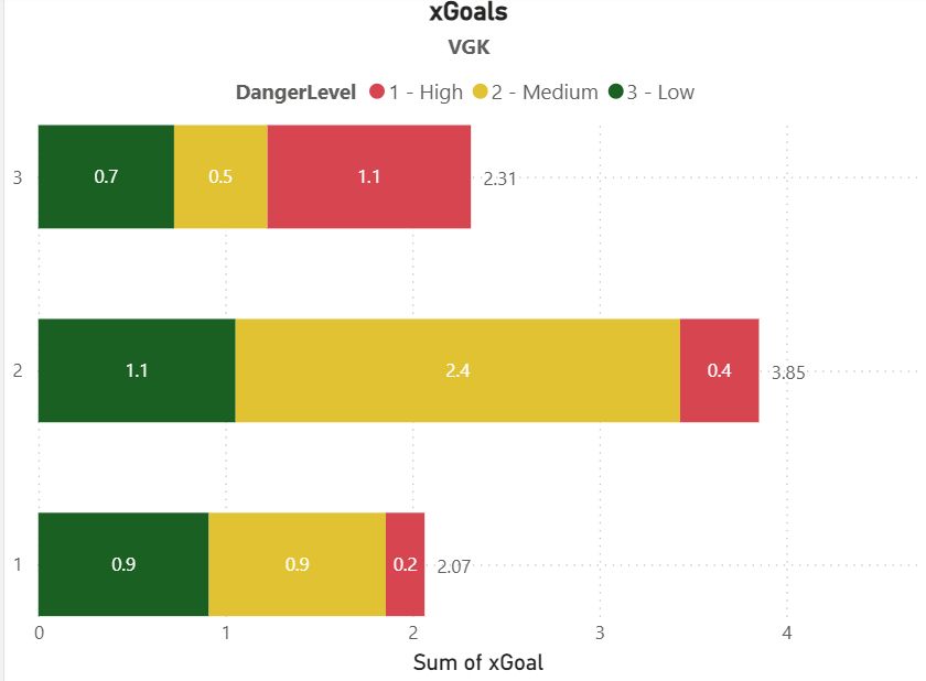 While Vegas' xGoal were down in game 3, the xGoals from high danger chances were way up. This needs to go down, and will also help Skinner make that extra save.