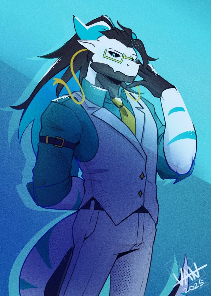 Halloween YCH comm from @midokami.bsky.social for @sneppo.bsky.social