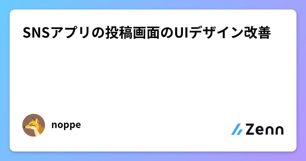 SNSアプリ「noppe」の投稿画面におけるUIデザインの改善プロセスをまとめた記事である。
