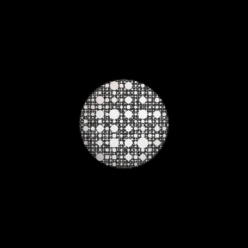 "Planet 13: Eris" from the 13 Planets series by Daïm Al-Yad. A striking generative art piece in 16K UHD. Central circular form with intricate patterns against a stark black background. Monochromatic color scheme emphasizes form and texture.