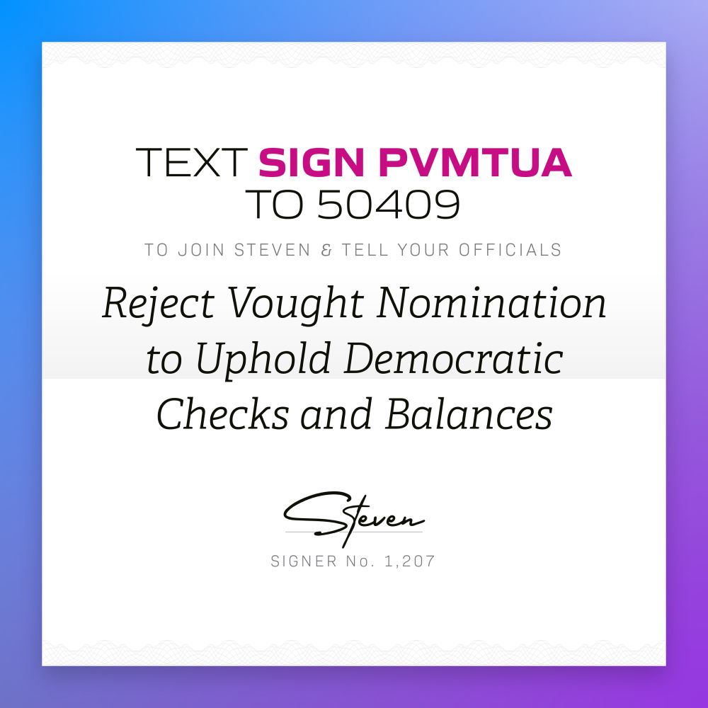 Let your representatives know how you feel. Reject Vought’s nomination see below