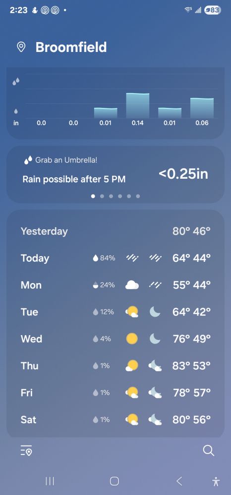 That rain looks pretty intense. I'll bet it is a nice break from the heat. Our lows are really dropping. We will be close to freezing a couple days in the coming week.