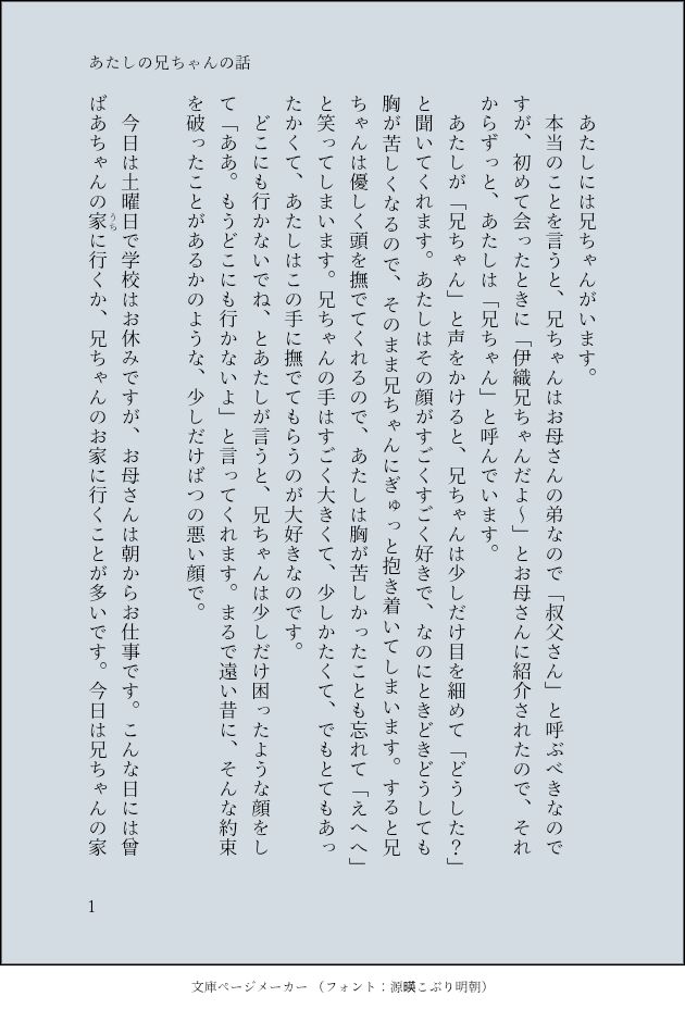 先日アップした「花火大会の日の話」のその後の話ですが、そちらを読んでいなくても恐らく大丈夫だと思います