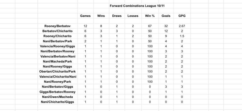 Record with different midfield combinations