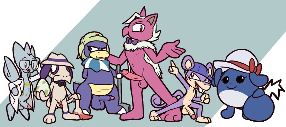 We've got two sets of starters (due to a composite character of "Emerald Protag" being utilized for Marshtomp), some evil teams, and the whole gym leader roster, all transformed.