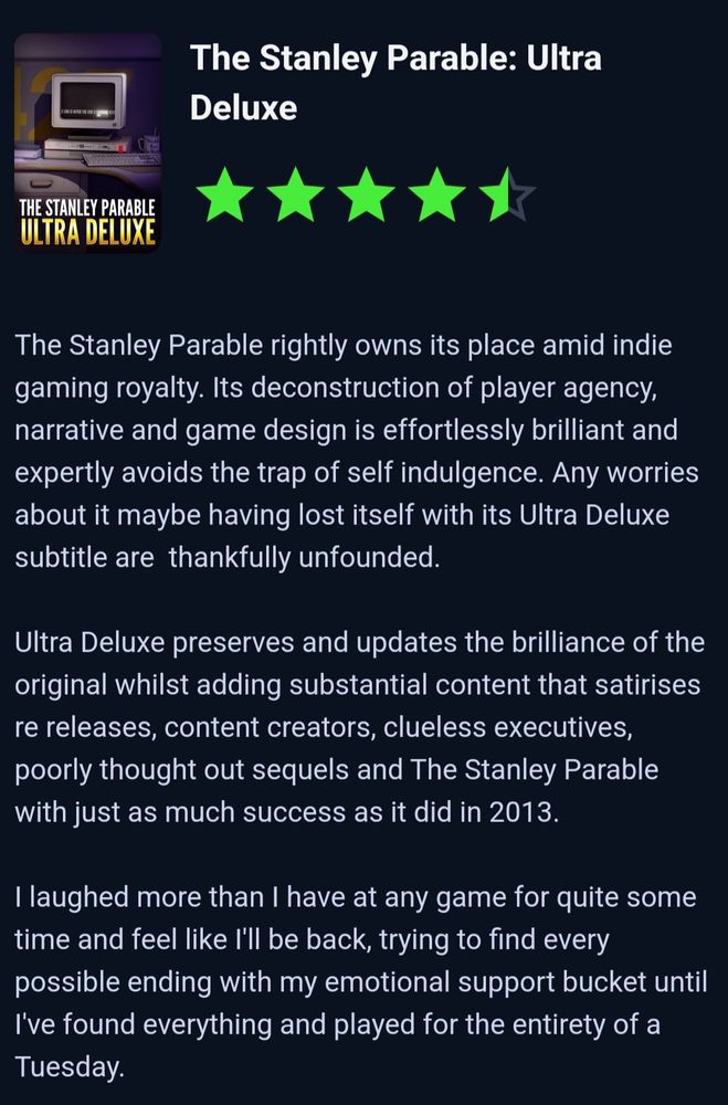 I'll be playing Donkey Kong Tropical Freeze, Star Wars Outlaws, and Return of the Obra Dinn. Then tomorrow, off to see The Presence.