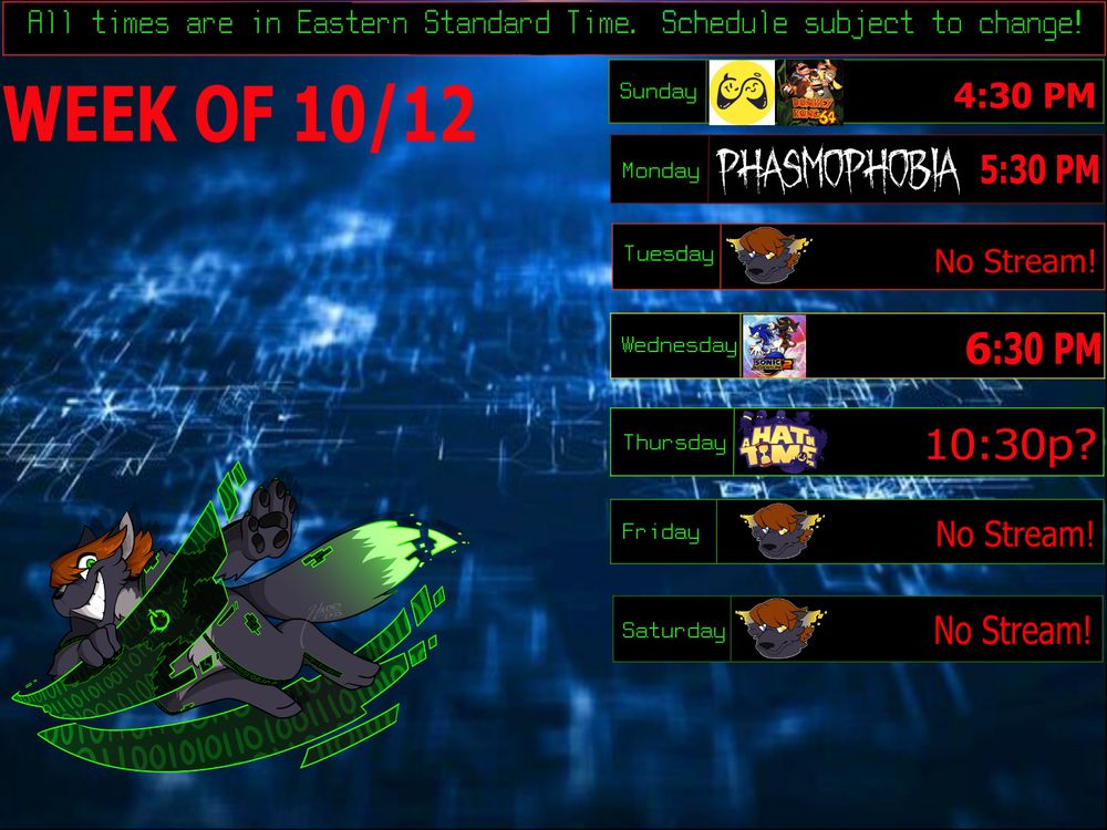 10/15: Sonic Adventure 2 starts at ~6:30p EST and will end at 9:45 for Erratum X
