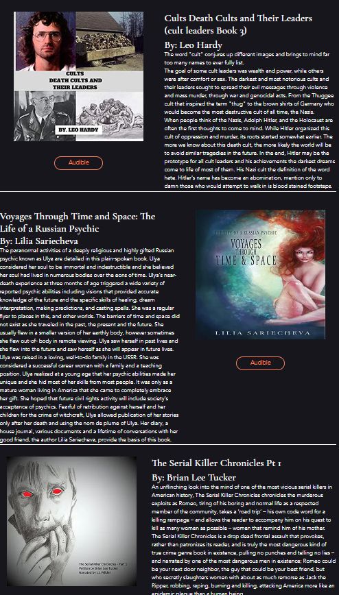 I have written and published 4 books so far. If you are into Twilight Zone/Outer Limits style of storytelling, you may like my stuff. You can read about them all here and where to find them!