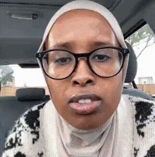 ALT: a woman wearing glasses and a head scarf is sitting in a car .