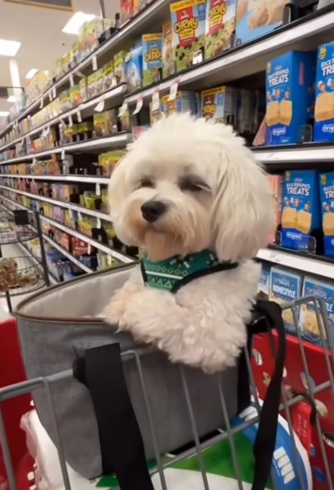 Look how well behaved this chap is in the supermarket , whilst ours is barred from the corner shop for pissing up the crisps