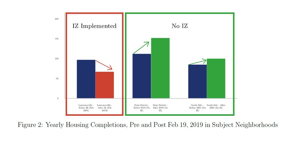 Pittsburgh's IZ mandate in Lawrenceville has reduced housing production by 32% since 2019. Extending IZ citywide in its current form will increase prices and harm affordability. Read our research on the topic here: prohousingpgh.org/pittsburgh-i...