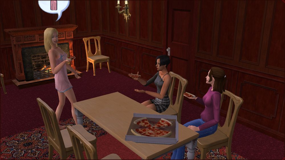 Eric looks up and sees (he thinks) a beautiful lady with a naggy attitude: "Hi! Sorry I thought I could hide in kitch.. er just forget about it, I'm sorry! It's a lovely .. party. Yes I absolutely mean the party." #thesims2