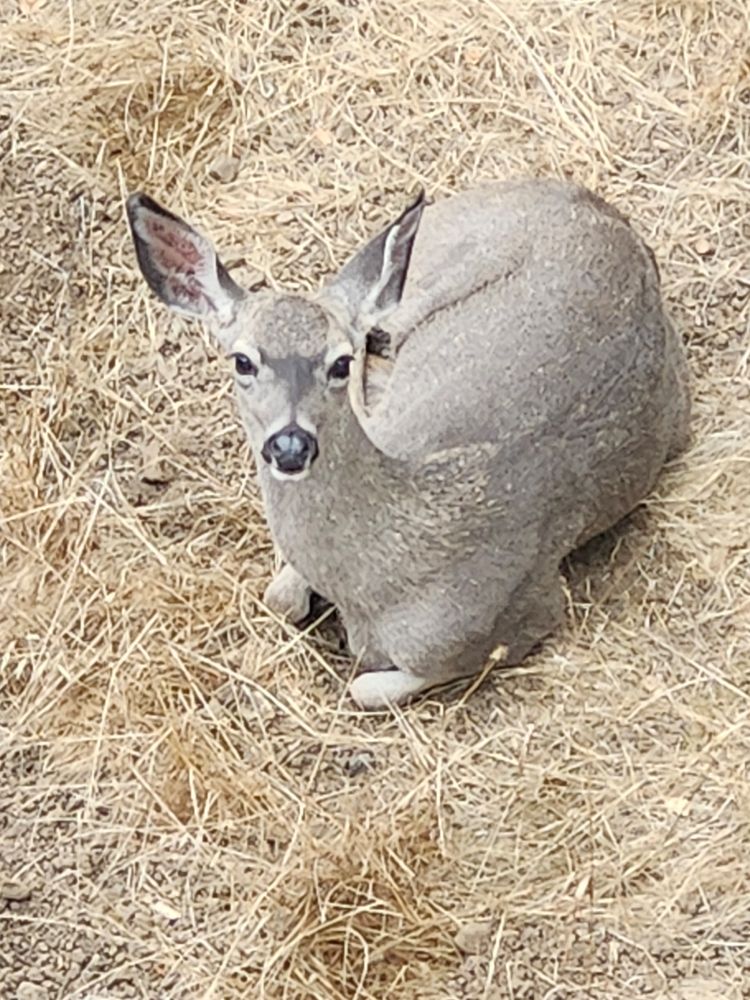 This is the guilty face of a black tailed doe. She ate my potato plants that were just starting to leaf. She is a beauty so can't be mad