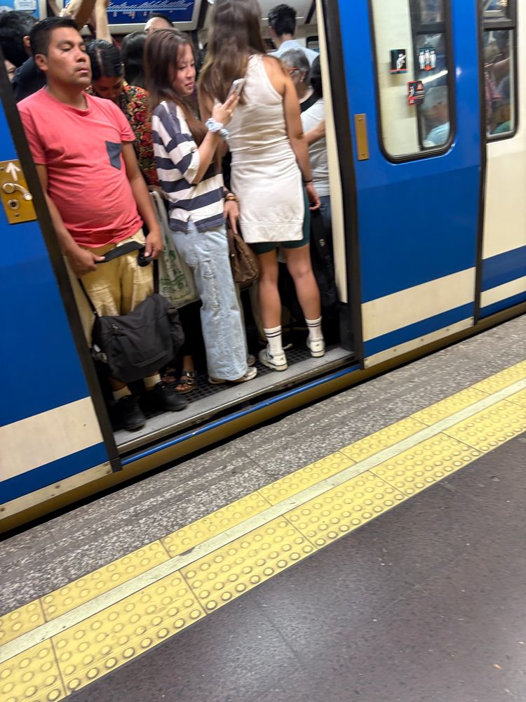 Intentando coger el metro de Madrid para ir a trabajar. Va a ser que no. Ayuso destroza los servicios públicos y hace la vida imposible en la ciudad.