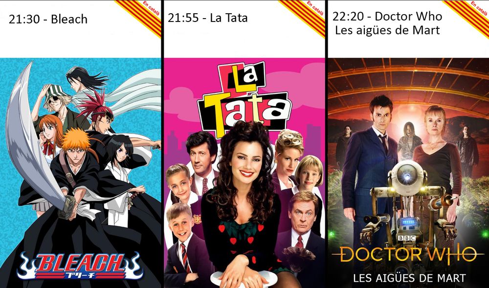 Avui tornem a la nostra programació habitual de sèries. Amb el millor anime, comèdia i ciència ficció. A més, avui us portem el primer de quatre especials seguits del Doctor Who.