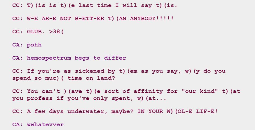 they do NOT write vriska like this anymore and it genuinely makes me sad. i have missed this absolute venom she has to her voice as a character.