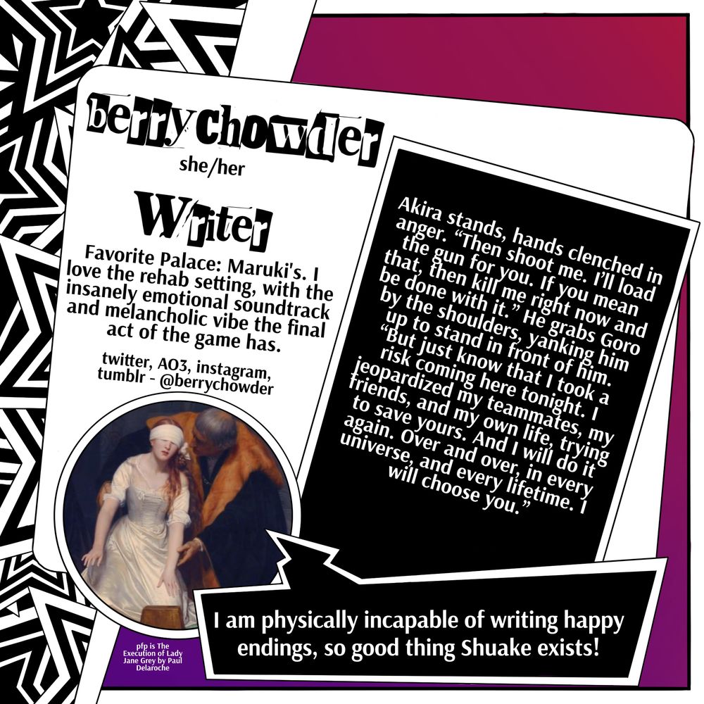 Our next writer is talented Berry Chowder! We are looking forward to seeing what she has for her Palace AU!