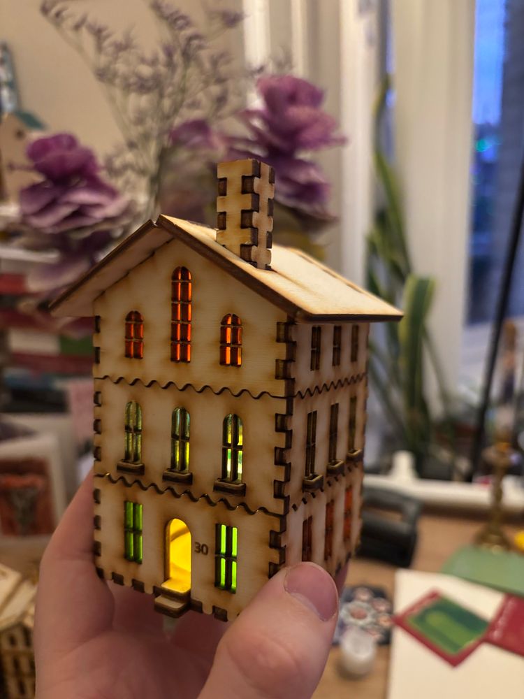 the tea lights are electric don’t worry (the laser ply is more fireproof than I thought but I’m taking no responsibility)