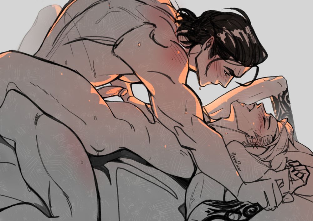 Had the absolute delight of collaborating with @smuttyblue.bsky.social on this piece for Halloween! I'm so happy because I probably wouldn't have had time otherwise and it was amazing working with them!😭 Thank you again ❤️ #Zosan #ゾロサン ⚔️🕒