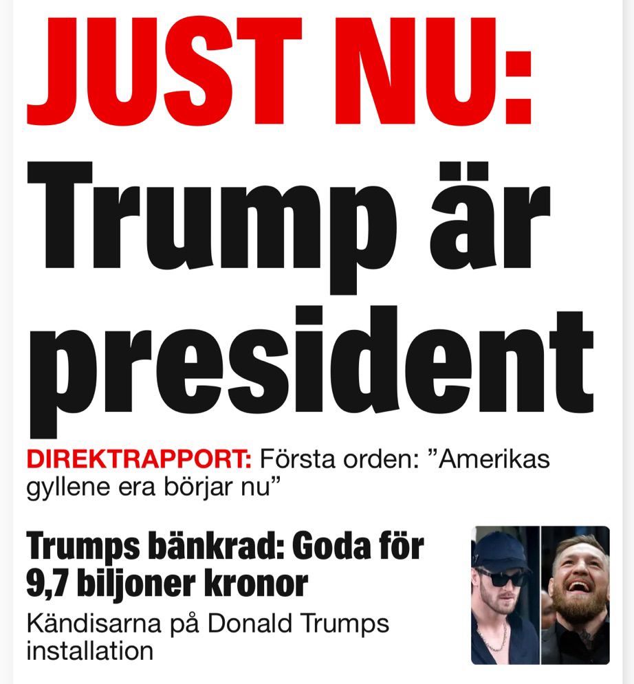 Expressen: TRUMP IS THE PRESIDENT (in the largest font size possible)
