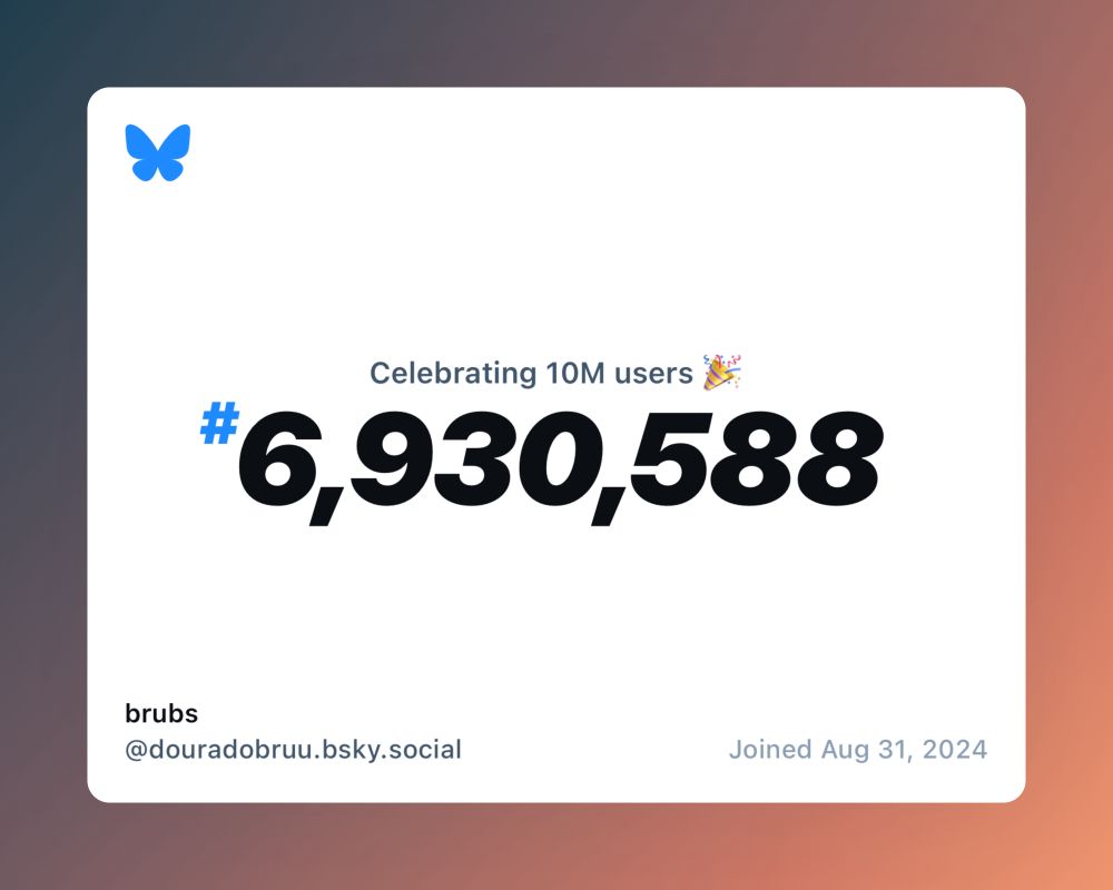 Bluesky now has over 10 million users, and I was #6,930,588! 💪🏼💪🏼