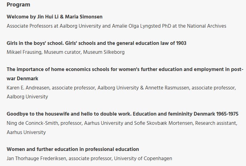 The program of this symposium on Gender and Education in Copenhagen April 10 looks great! (incl @kareneandreasen.bsky.social @mariasimonsen.bsky.social et al) www.arbejdermuseet.dk/arrangement/... #histed