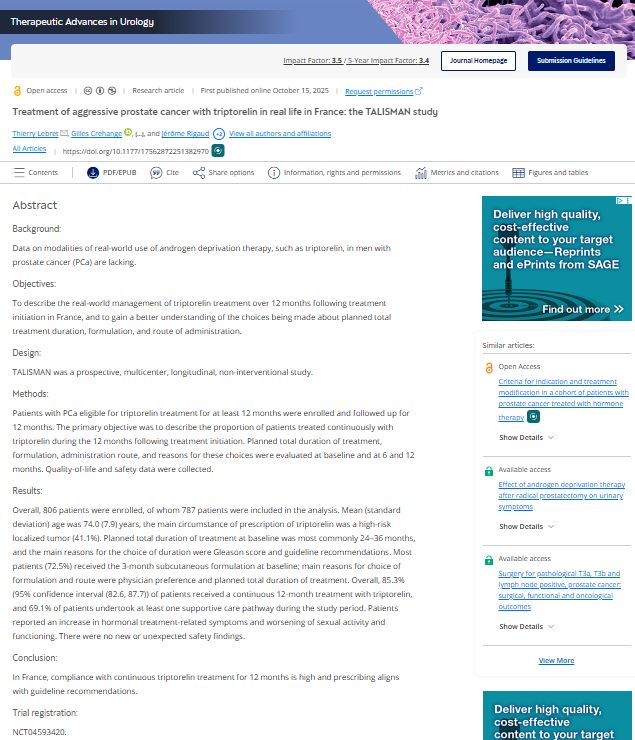 Treatment of aggressive prostate cancer with triptorelin in real life in France: the TALISMAN study