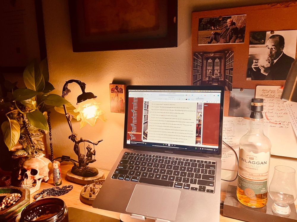 Amongst many other wonderful gifts, my wife got me an external monitor. I’m going to have to move some things around, but it’s so nice not to have to squint when I’m writing anymore. Oh and Project Scribblers is now sitting at just over 47k words.