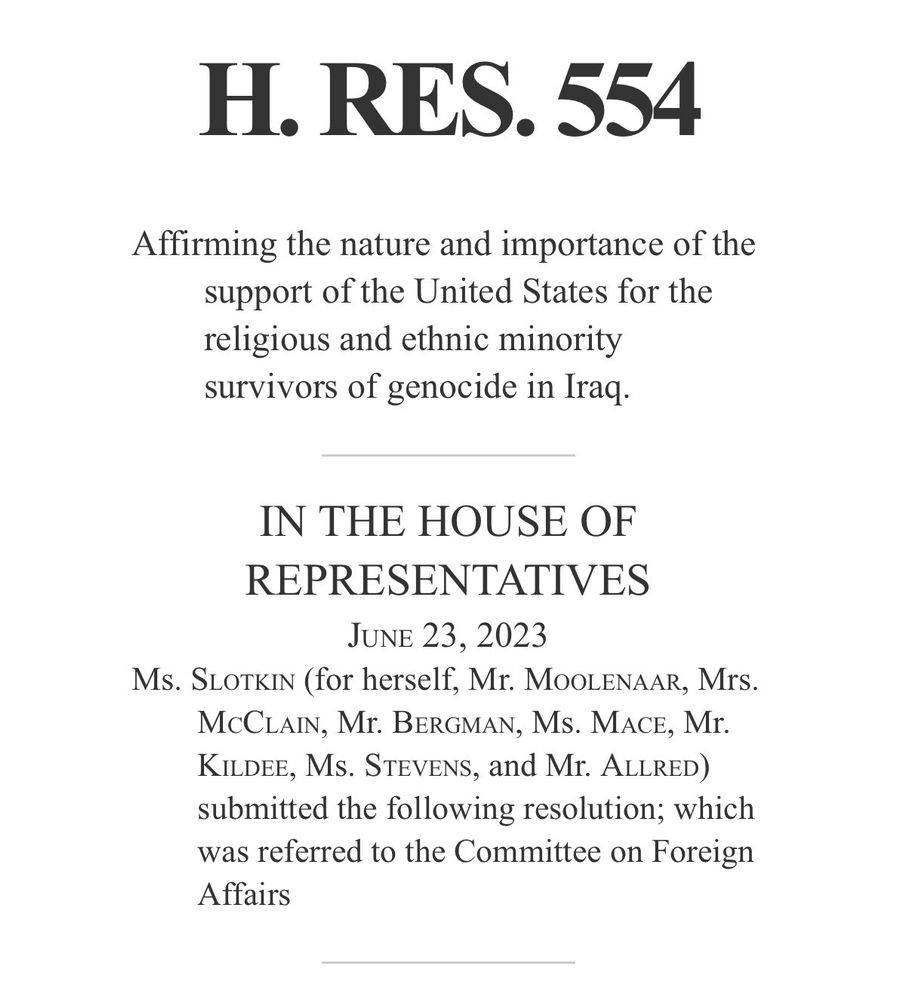 Passed US House Res. 554 “affirming the nature and importance of the US support for minorities in Iraq.” Also mentioning autonomy and self administration based on the article 125 of Iraqi Constitution.