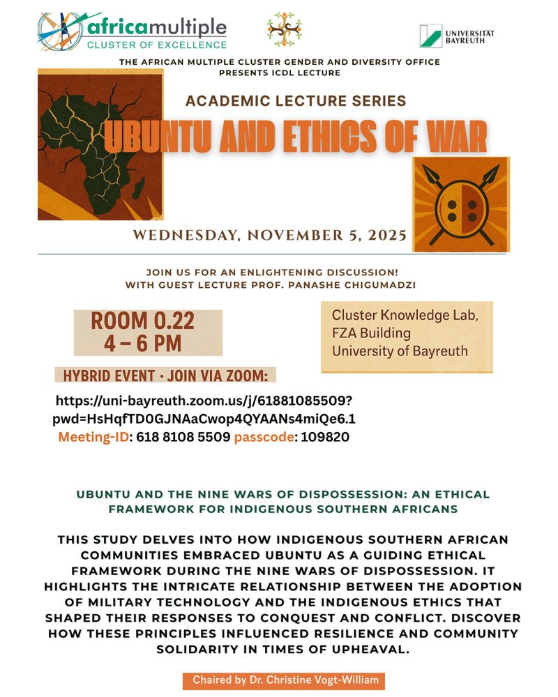 🎓 Prof. Panashe Chigumadzi will lead a thought-provoking lecture titled: “Ubuntu and the Nine Wars of Dispossession: An Ethical Framework for Indigenous Southern Africans.”