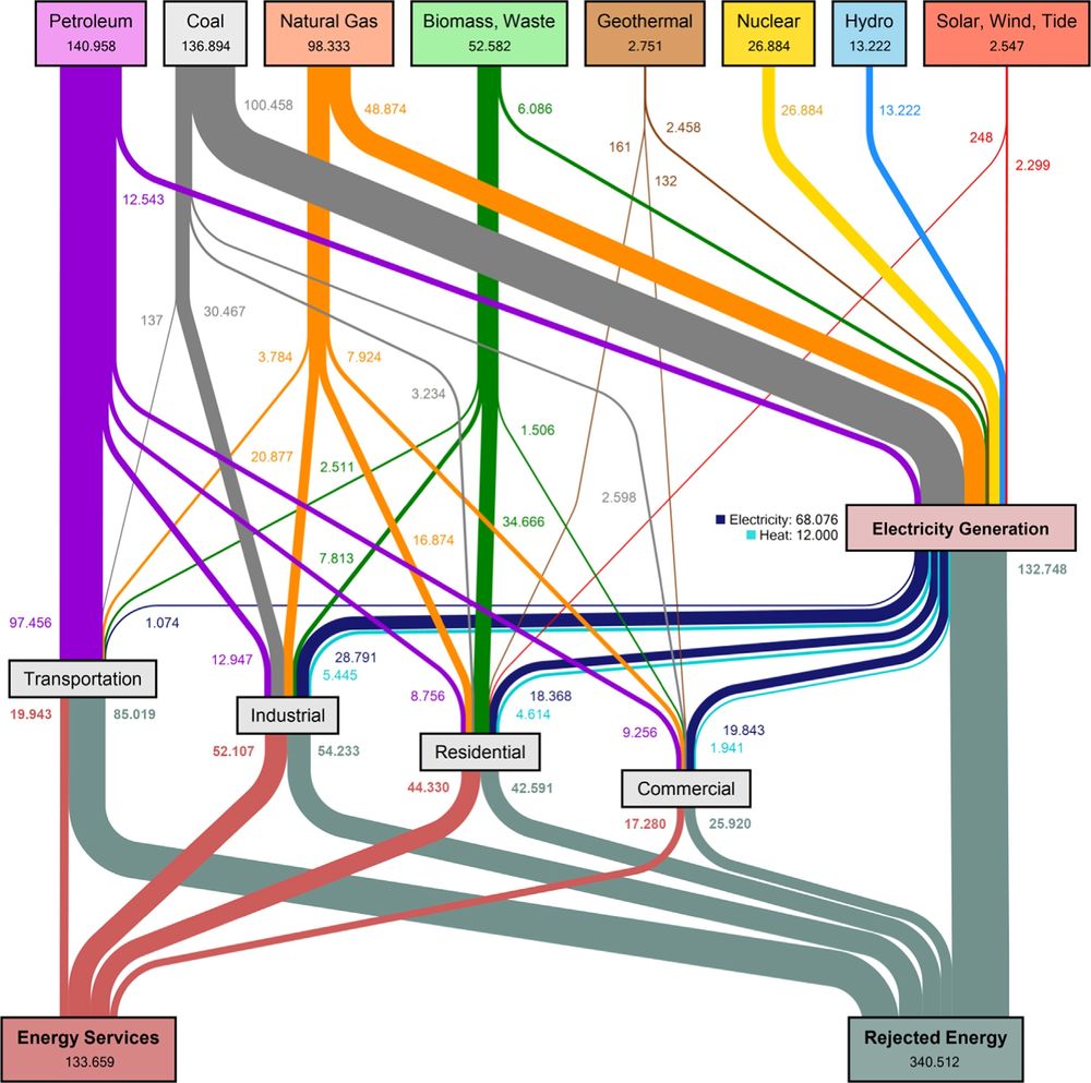 2/3rds of primary energy usage is wasted - just straight dissipated as heat to the environment. 2023 data from LLNL. flowcharts.llnl.gov/commodities/...