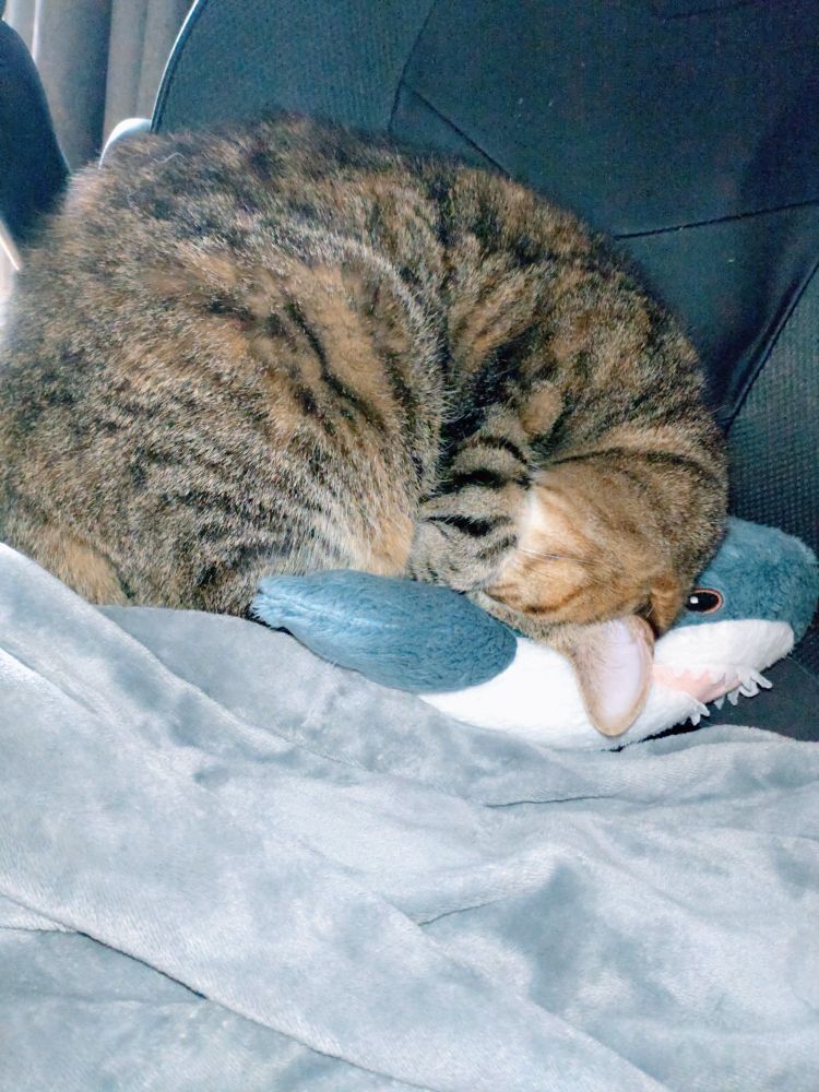 so now she's always next to me when im at my pc, just ball-ing on my blåhaj on my old desk chair