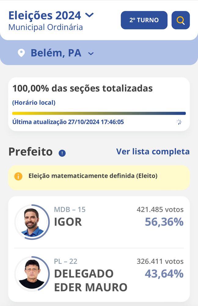 Porém, com uma abstenção se 25% (+5% comparado a última eleição para prefeito)