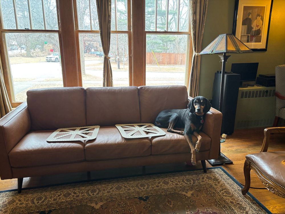 Note the dog-excluding spike mats to her right.
