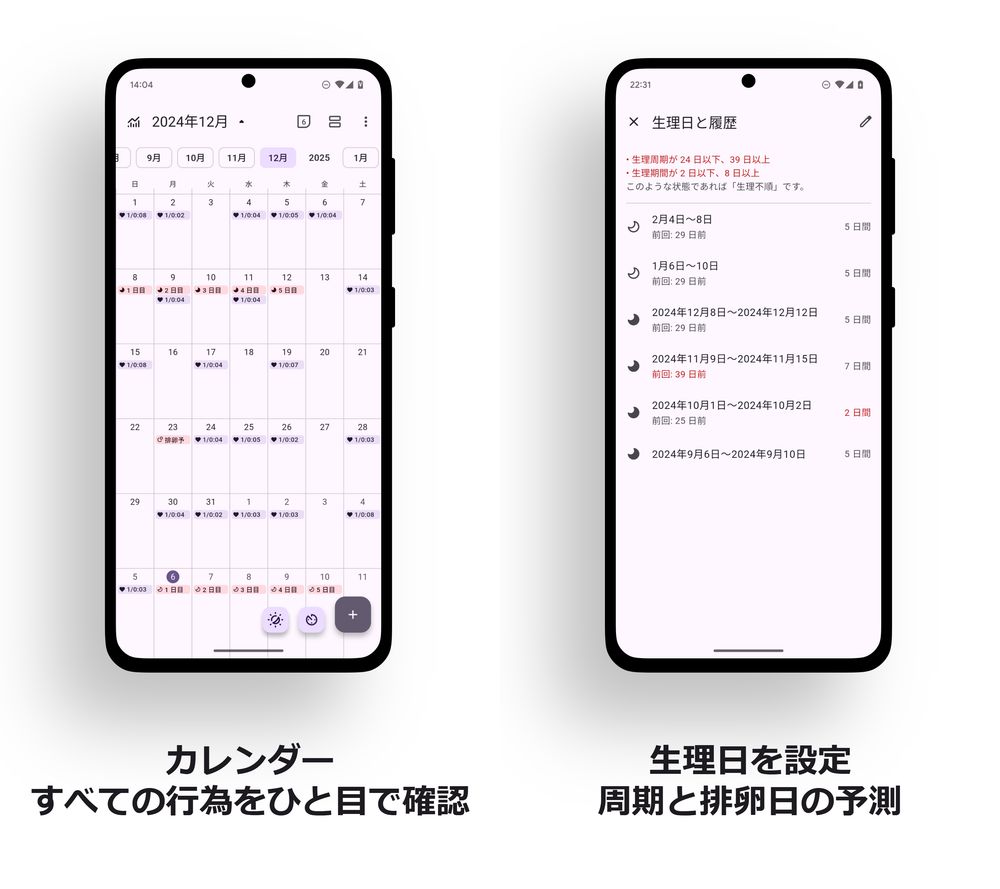 グラフで振り返ることで、自分だけのリズムや傾向を理解し、より健やかなセルフケアにつなげられます。