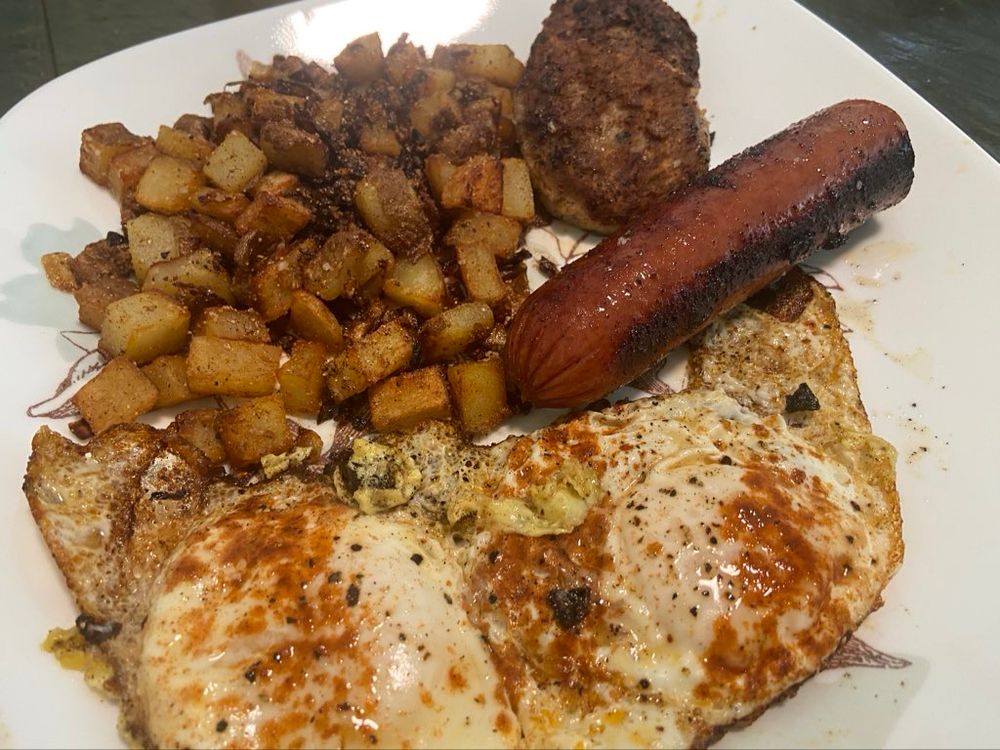 Gmorning my lil sprouts! Todays #ElfGalGrub is Hash with eggies and Double the sausage! Itadakimasu