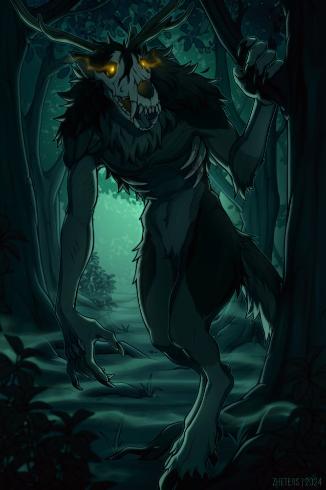 #art #digitalart #commission #spooky #furryart #wendigo #halloween #athro #monster #skulldog