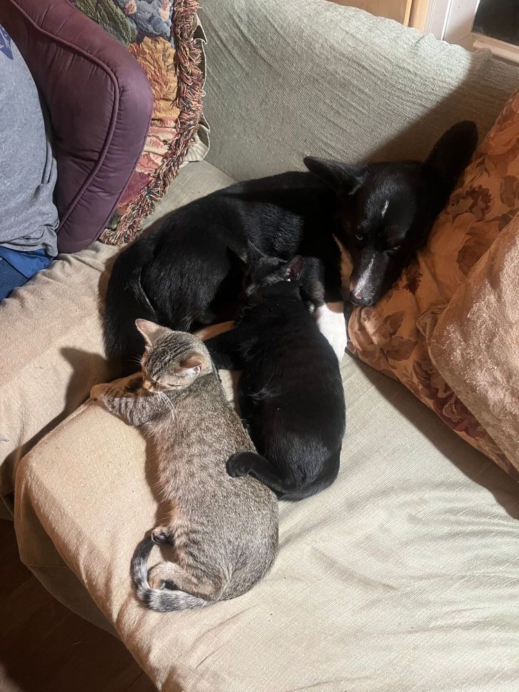 Dogs lying with cats! Where will it end?? LOL and happy rainy Monday!
