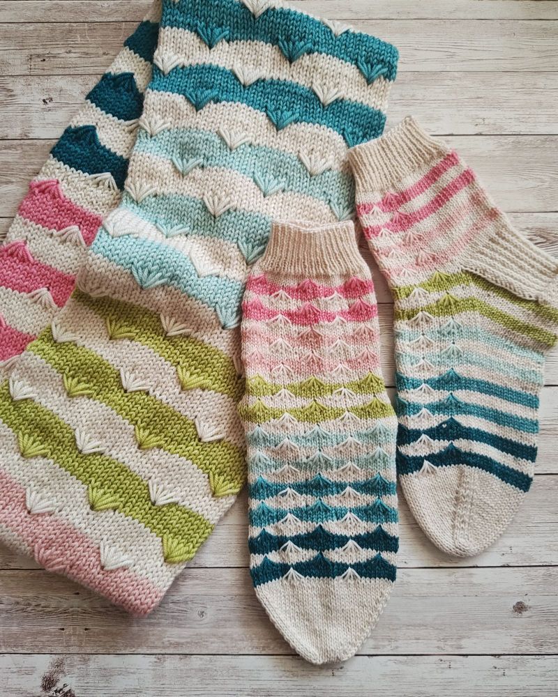 Mount Floral (socks) and Mount Floral Cowl: two patterns for relaxing spring knitting!